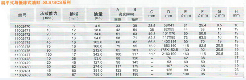 SCS-低床式系列油缸規(guī)格: